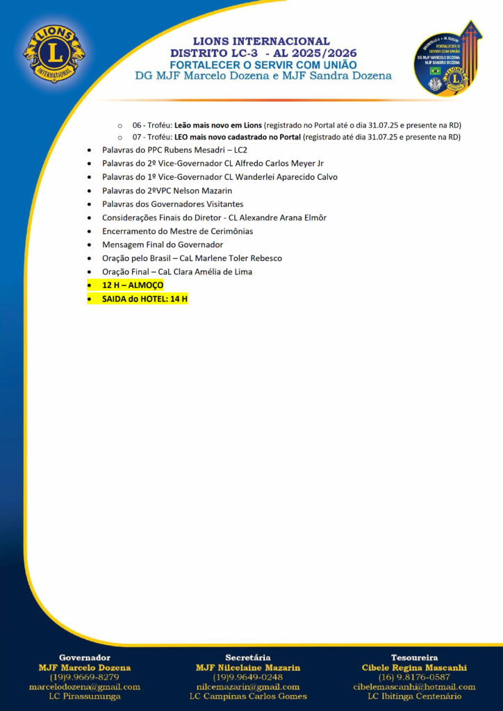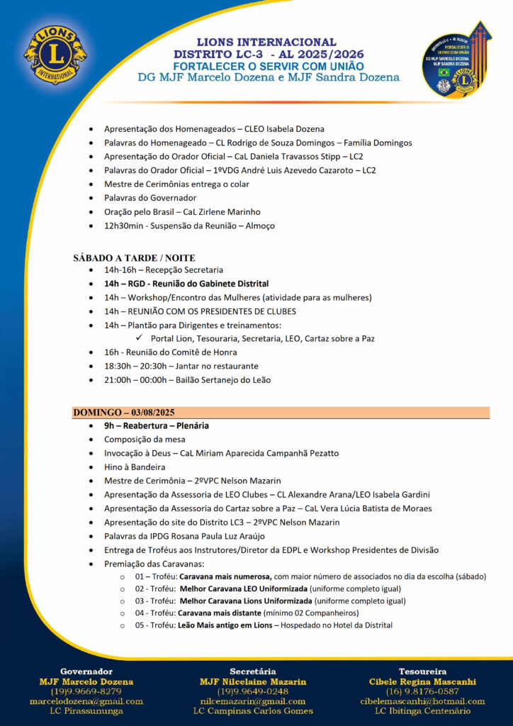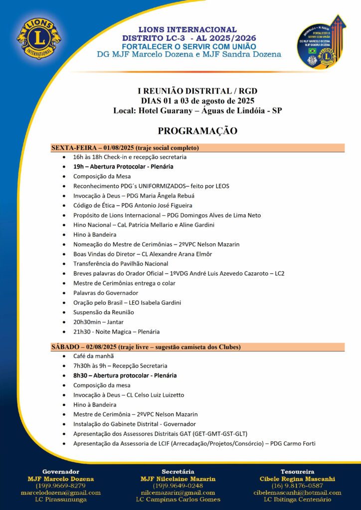 Programa: I Reunião Distrital-LC 3 – Águas de Lindóia-SP